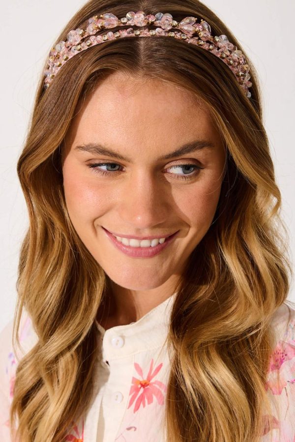 Add a touch of whimsy to your outfit with our Echo Headband in Blush. This gorgeous gold-toned headband is studded with stunning beads and diamantes. Wear it to sparkle and shine!