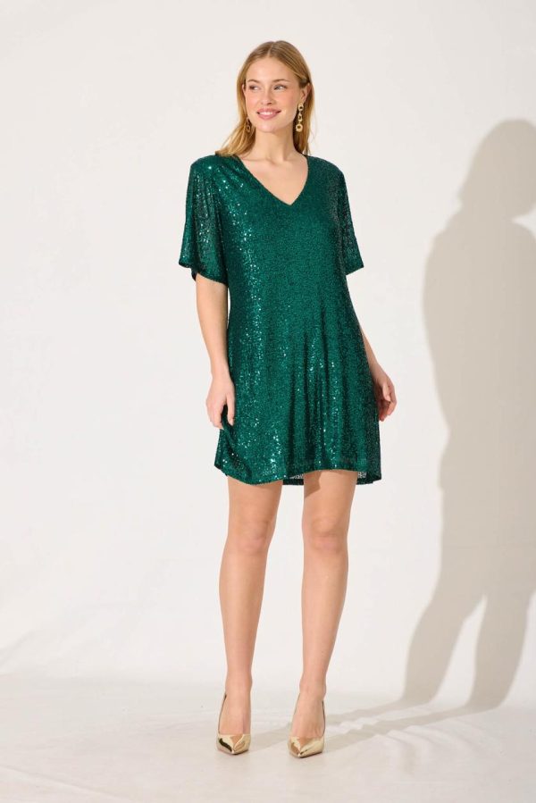 Shine bright like a diamond in our Its You Dress. Featuring an all-over sequin embellished fabric, this party dress sports a shift silhouette, V-neckline and short sleeves. Glam it up and dance the night away!
