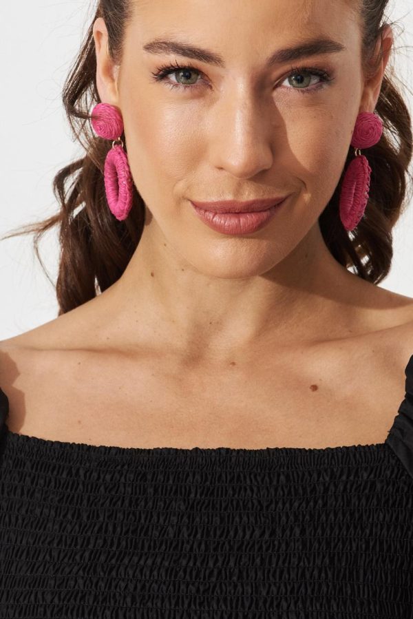 Women Lalla Drop Earrings In Pink Rattan | St Frock Earrings quantity