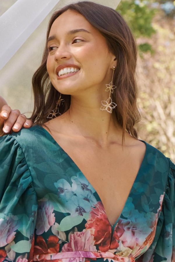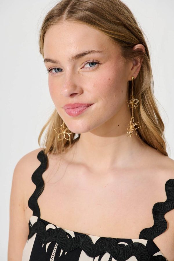 Women Marisa Flower Drop Earrings In Gold | St Frock Earrings
