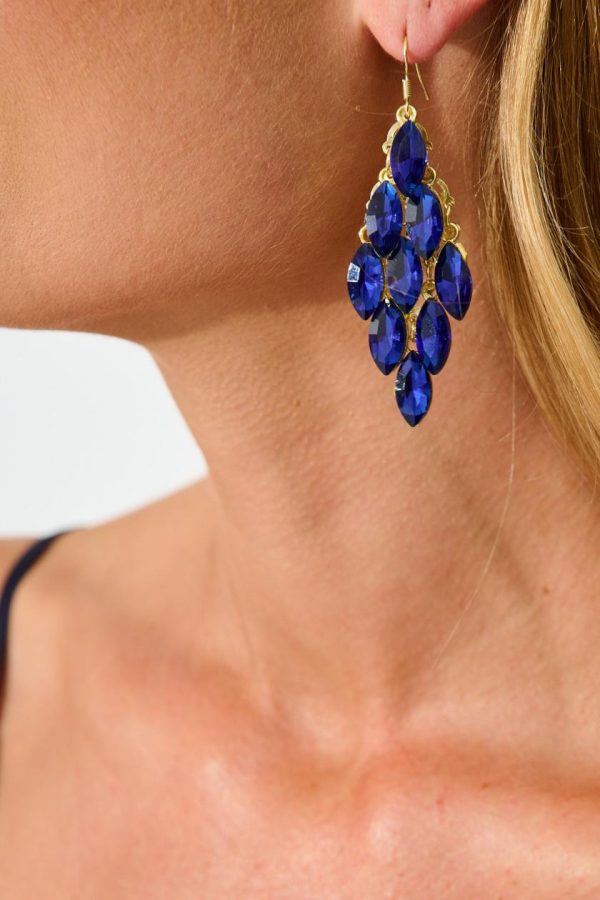 Women Tanya Drop Earrings In Gold With Navy Stones | St Frock Earrings quantity